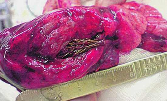 Când tânărul Artyom Sidorkin, în vârstă de 28 de ani, a suferit o intervenție chirurgicală pentru a elimina o tumoare canceroasă ce îi creea dureri toracice acute, personalul medical din Izhevsk, Urali, Rusia, a fost uimit să vadă un copac mic ce creștea în interiorul plămânilor pacientului lor. Cei cinci centimetri ai ramurilor de brad au fost descoperiți atunci când chirurgul Vladimir Kamashev a luat probă din plămânul omului pentru o biopsie. Dr. Kamashev își amintește: „Am crezut că am halucinație, am rugat asistentul meu să îmi confirme ceea ce văd, i-am spus: <<Vino și vezi asta – am luat un brad de aici>>. El a dat din cap în stare de șoc, am clipit de trei ori să mă asigur că ceea ce văd este real”. Medicii cred că Sidorkin a inhalat o sămânță ce s-a depus în țesutul lui pulmonar. Sămânța a încolțit acolo și a crescut până a început atingerea capilarelor în țesut, provocându-i lui Sidorkin dureri extreme. Ramura a fost în cele din urmă eliminată. „A fost foarte dureros, dar, să fiu sincer, nu am simțit nici un obiect străin în mine”, a declarat Sidorkin în urma bizarei experiențe, „Sunt atât de ușurat că nu este cancer”.