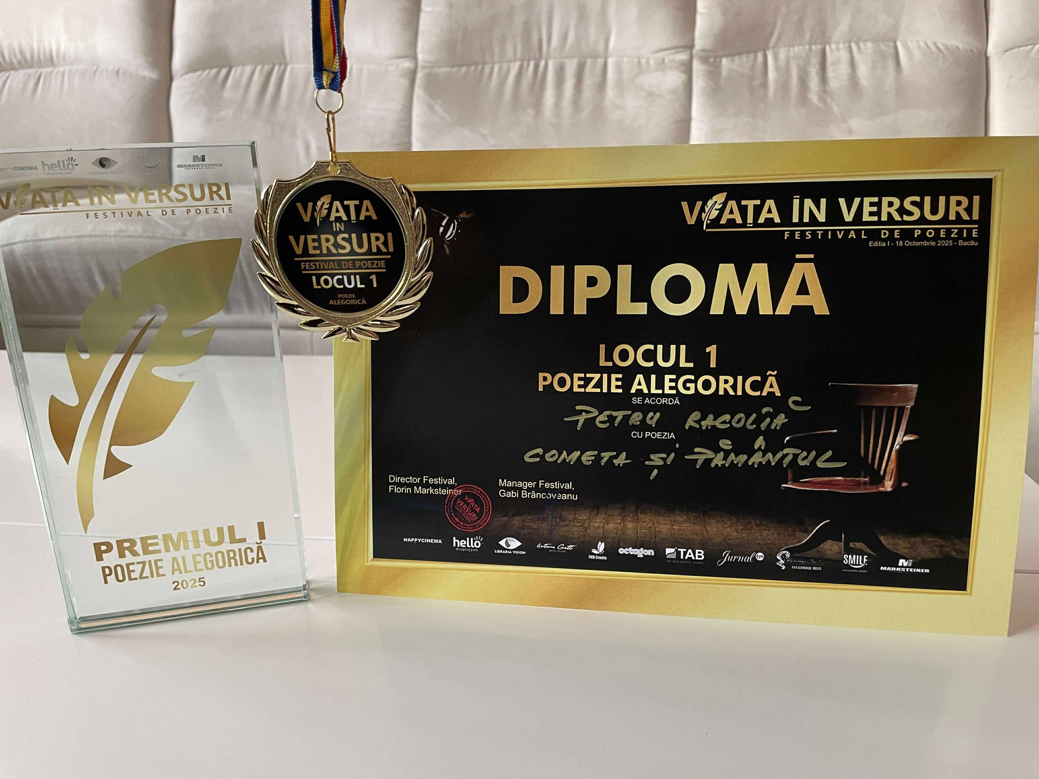 Premii la festivalul de poezie „Viața în Versuri” 2025 Posted on 19 December 202519 December 2025 by racoltapetru6 Poezia premiată este aici. Poezia premiată este aici. Share this: Click to share on X (Opens in new window) X Click to share on Facebook (Opens in new window) Facebook Like Loading... Related